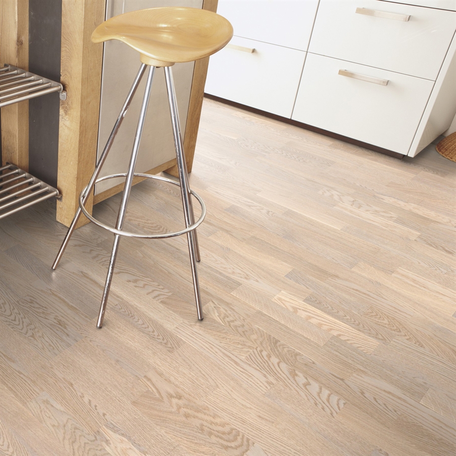 Klar/hvid olie: Trægulvet er fabriksolieret. Det anbefales at oliere gulvet inden ibrugtagning. Et olieret gulv skal efter behov efterolieres.