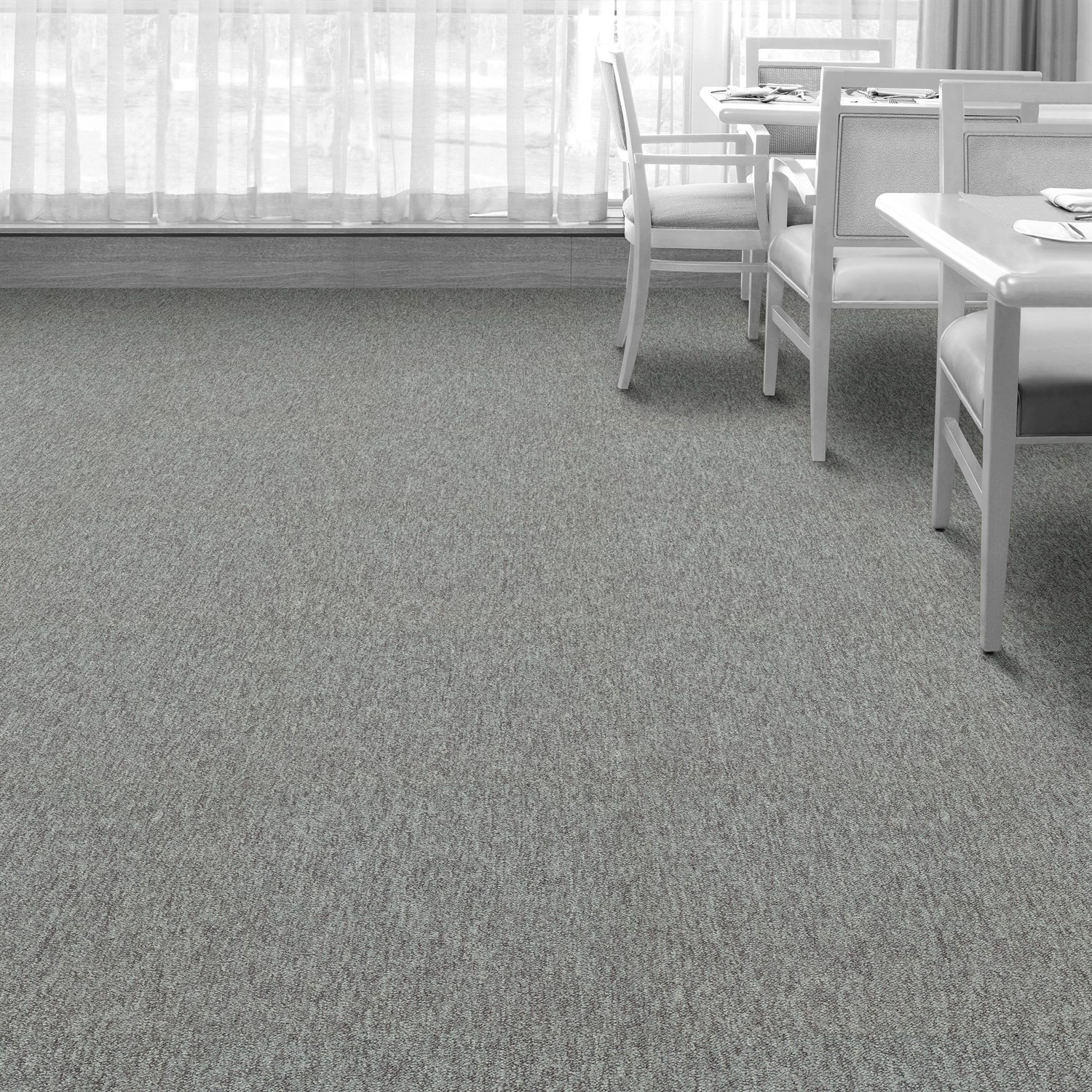 Denne type tæppeflise er uden ret meget struktur, så når fliserne er monteret helt tæt sammen virker det som et stort tæppe. Det er bare væsentlig nemmere at montere. Hvis der ønskes et særligt spil i gulvet, kan man blande forskellige farver sammen.