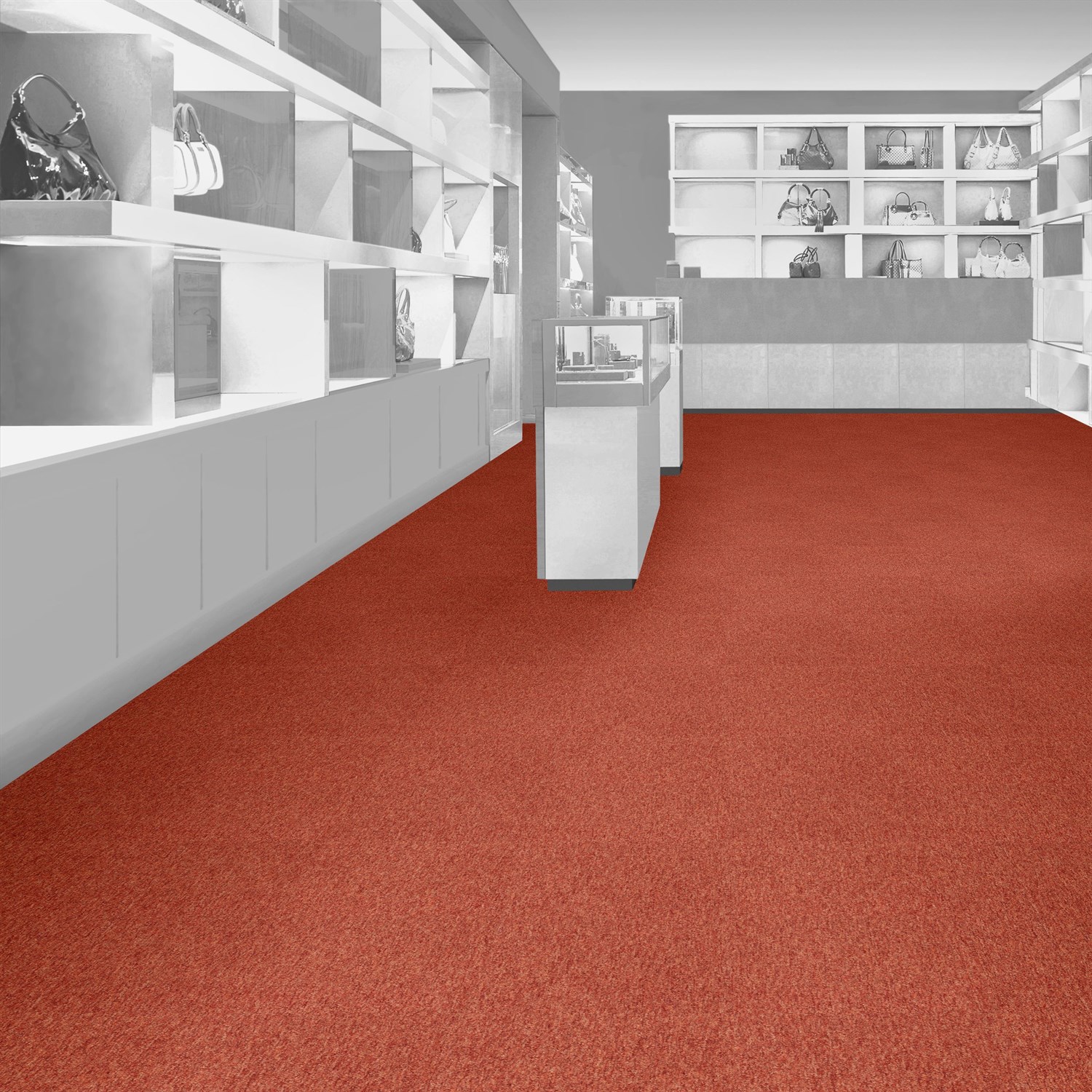 Tæppefliser fra Interface i serien Heuga 530 II har en flot tæt vævet struktur i genanvendt farvet nylon, der ser eksklusiv ud, og er meget slidstærk.