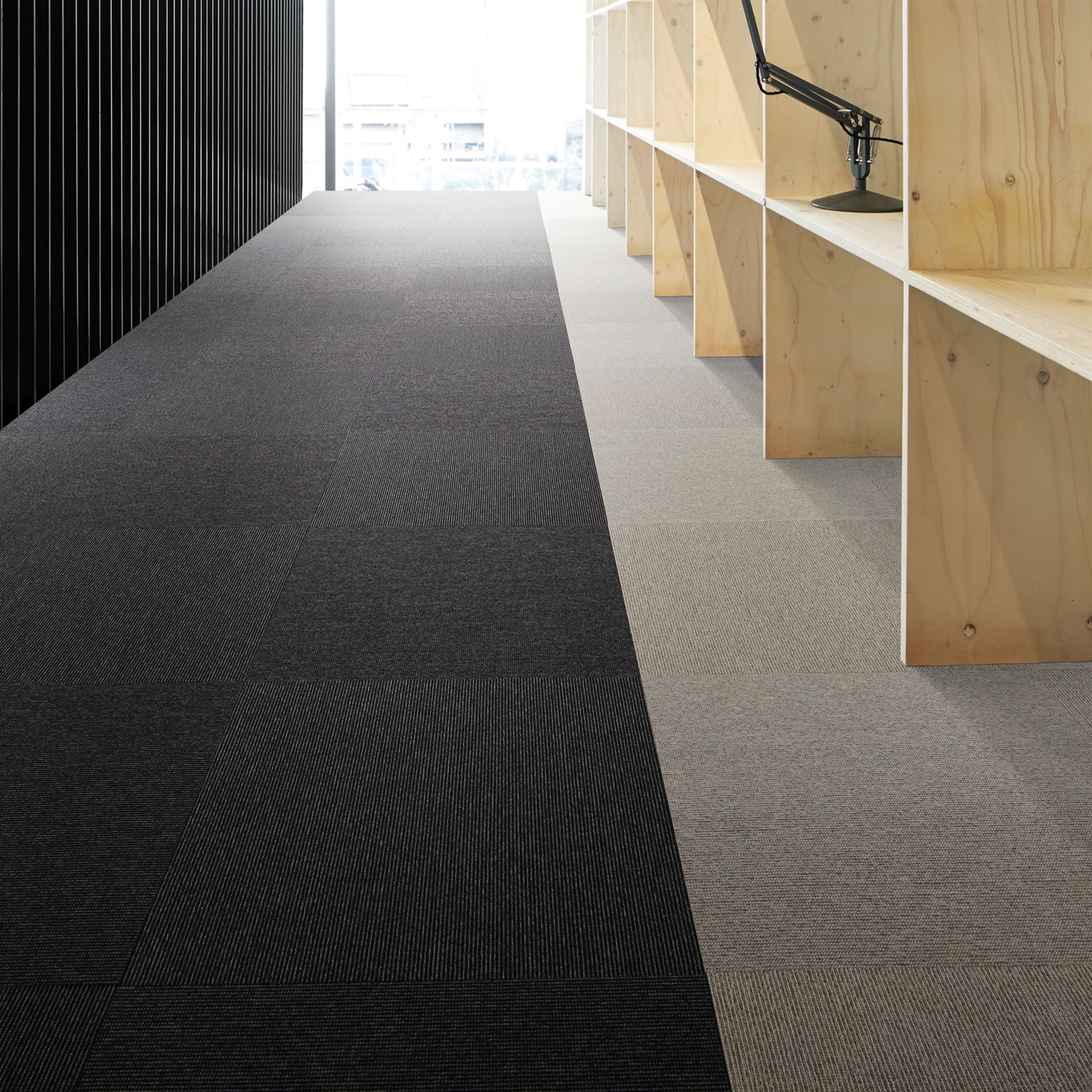 Tæppefliser fra Interface i serien Elevation III har en flot tæt vævet struktur i farvet nylon, der ser eksklusiv ud, og er meget slidstærk.
